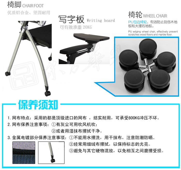 ※温馨提示: 培训椅 CG-BY210的图片颜色已尽量接近实物,但因为拍摄时的光线、显示器的分辨率不同等因素,培训椅 CG-BY210会存在一定的色差,请您谅解。