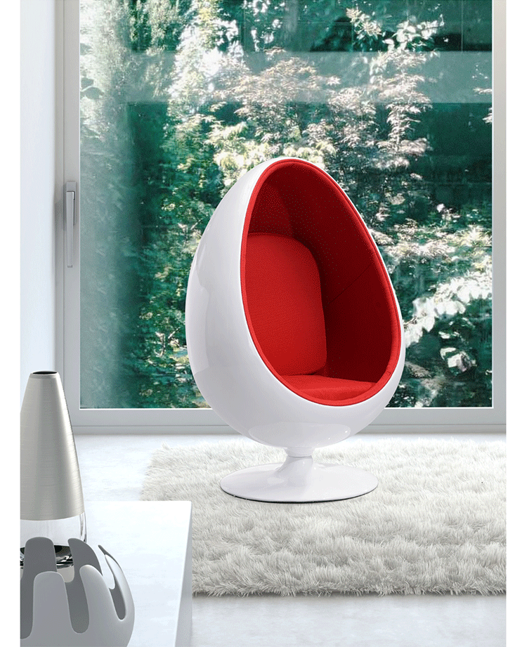 LOL red lounge chair(LOL 红色躺椅)是设计大师Eero Aarnio的作品,设计雏形为其设计的Egg chair,是介乎于家具和建筑之间的一种产品,它好像“房间里的房间”,椅子很矮,坐进去,就仿佛陷入另外的一个世界,能迅速拥有安静舒适的环境,外界的噪音也被抵挡住。可以躲在里面冥想、放松身心,或者打私人电话。设计师阿尼奥就在自己那把原版的“球椅”内壁上装了一个红色的电话机,“球椅”提供一个相对私密的空间。椅子底部有轴,能360度旋转,坐在里面的人向外看,眼前的风景会随着转动而改变。这样,即使蜷缩在椅子里,也不会有与外界完全隔离的孤独感。就是这样一个狭小的空间,却带给了人们无比的安全感与舒适感,也就是这把椅子的诞生,掀开了“PODLIFE” 的篇章。