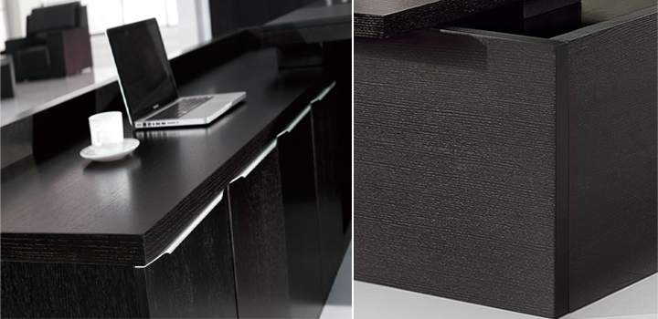 ※ 上图为大班台副柜以及大班台边缘展示,纹理浑然天成,卓而不凡。