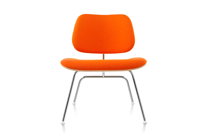 A refreshing variant of the LCM (1946), the Upholstered LCM sports Kvadrat Divina fabric on its front side. This iconic chair began as an experiment in the Eameses'apartment,where they were molding plywood in what they called the“Kazam! Machine.”The machine pressed thin sheets of wood veneer against a heated membrane that was inflated by a bicycle pump. Humble beginnings for what would become one of the world's most widely recognized and highly coveted chairs.Low-slung,with an expertly crafted molded seat and back(no bike pumps are used today),this chair cradles you in a comfortable position.Its form relates directly to the human body and holds no secrets as to how it succeeds technically.The slender rod base provides superior strength,while rubber shock mounts buffer against jarring movement.