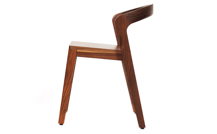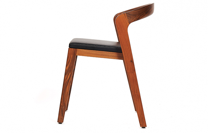 Elegant solid wooden chair with a unique contemporary design.Typical characteristics are:easy stackable,ergonomic,compact,luxurious,for residential and commercial projects.