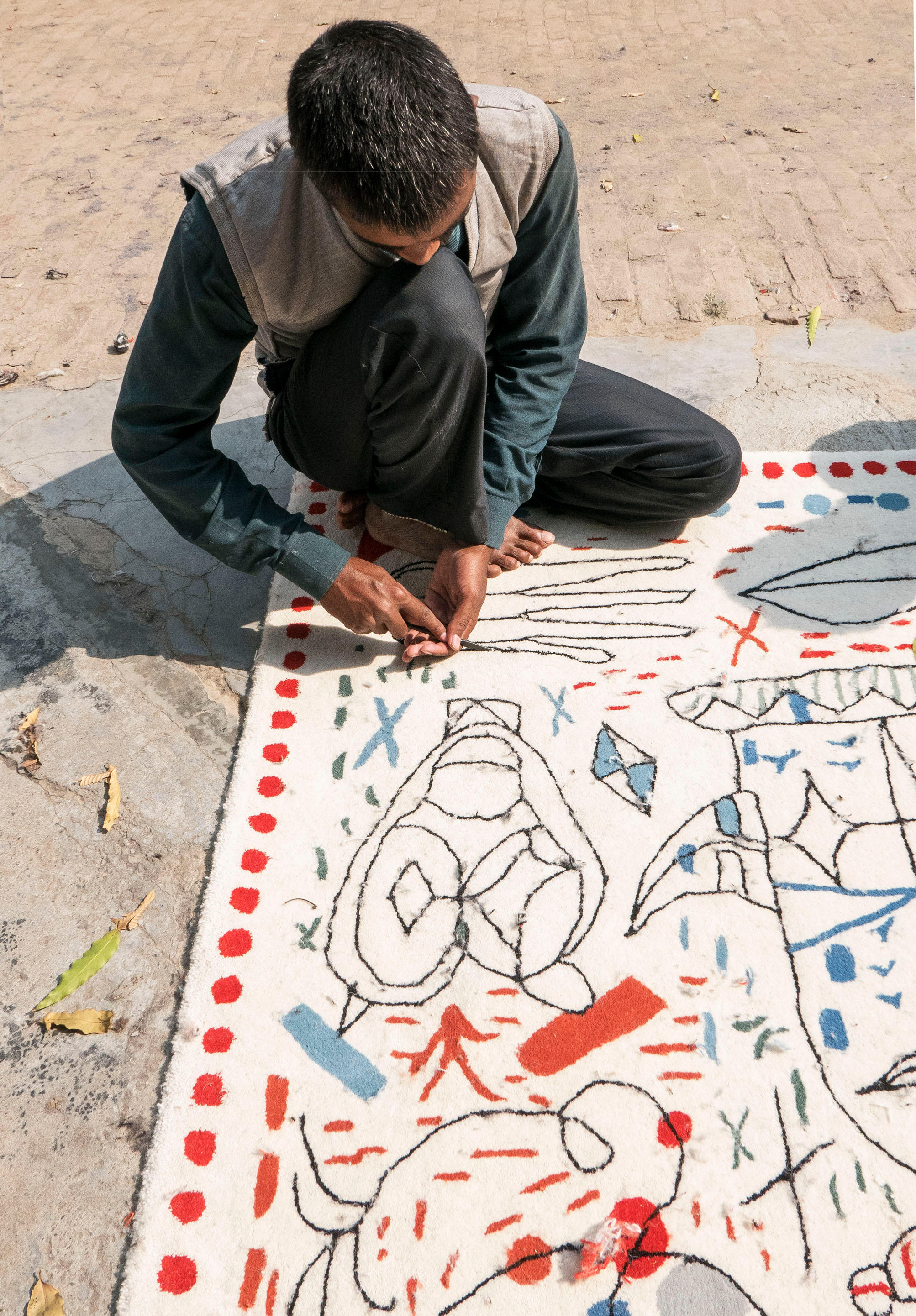 第一眼看到的是一片混乱的颜色和形状,它们侵入了地毯。然而,在仔细看,Jaime海因弹簧的想象力生活:海龟、嘴唇,手,凳子,鱼,男人等等...