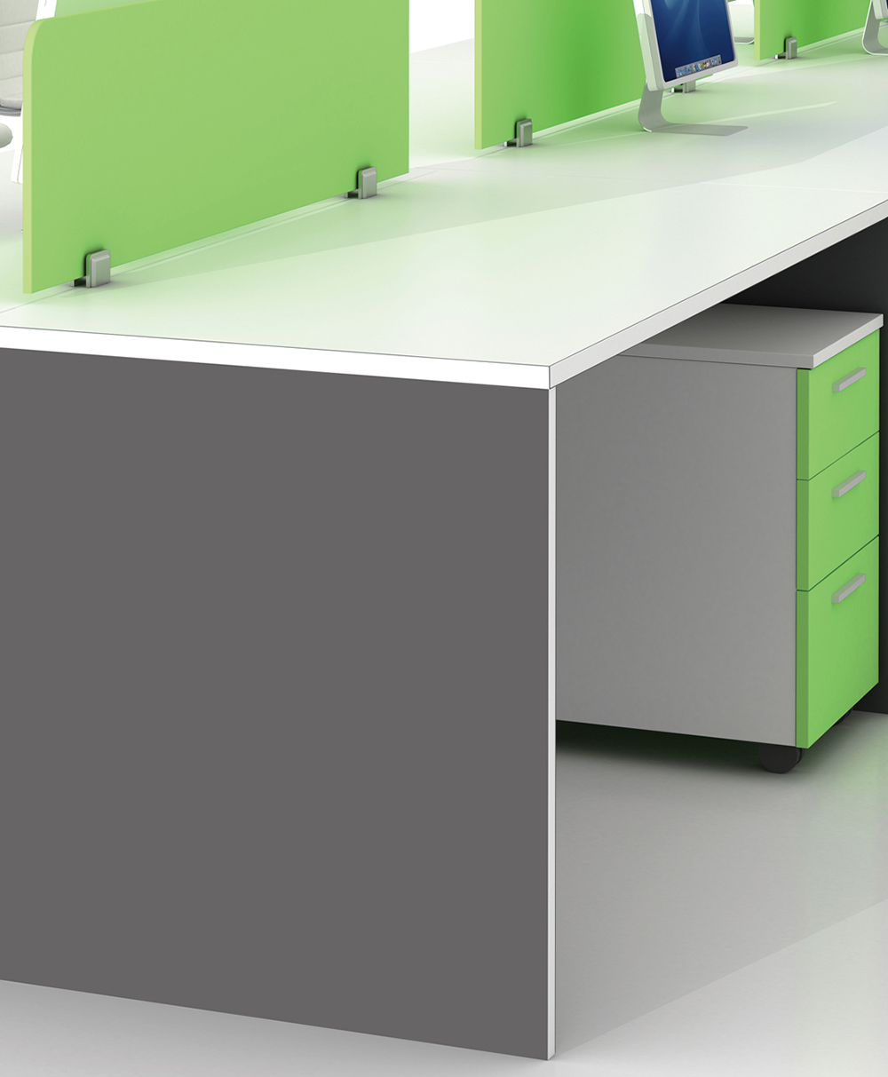 2. 基 材:E1级达欧洲环保标准基材(目前国内办公家具行业板式基材标准较高的),此基材用原木压缩颗粒成型,甲醛含量小于1.4MG/L,抗弯性能强,不易变形。