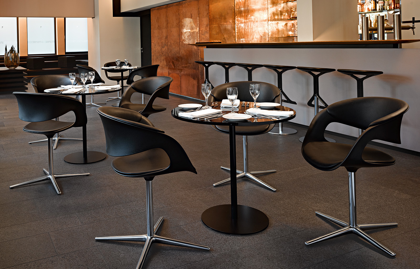 Lox茶几圆形或圆润的桌角,给人更安全的体验。无论是白色还是黑色玻璃桌面都散发着明亮的光泽。底座的形状是与桌面相呼应的的形状,与Lox系列座椅更为般配。同时适用于住宅区、办公室、餐厅或者酒吧。
