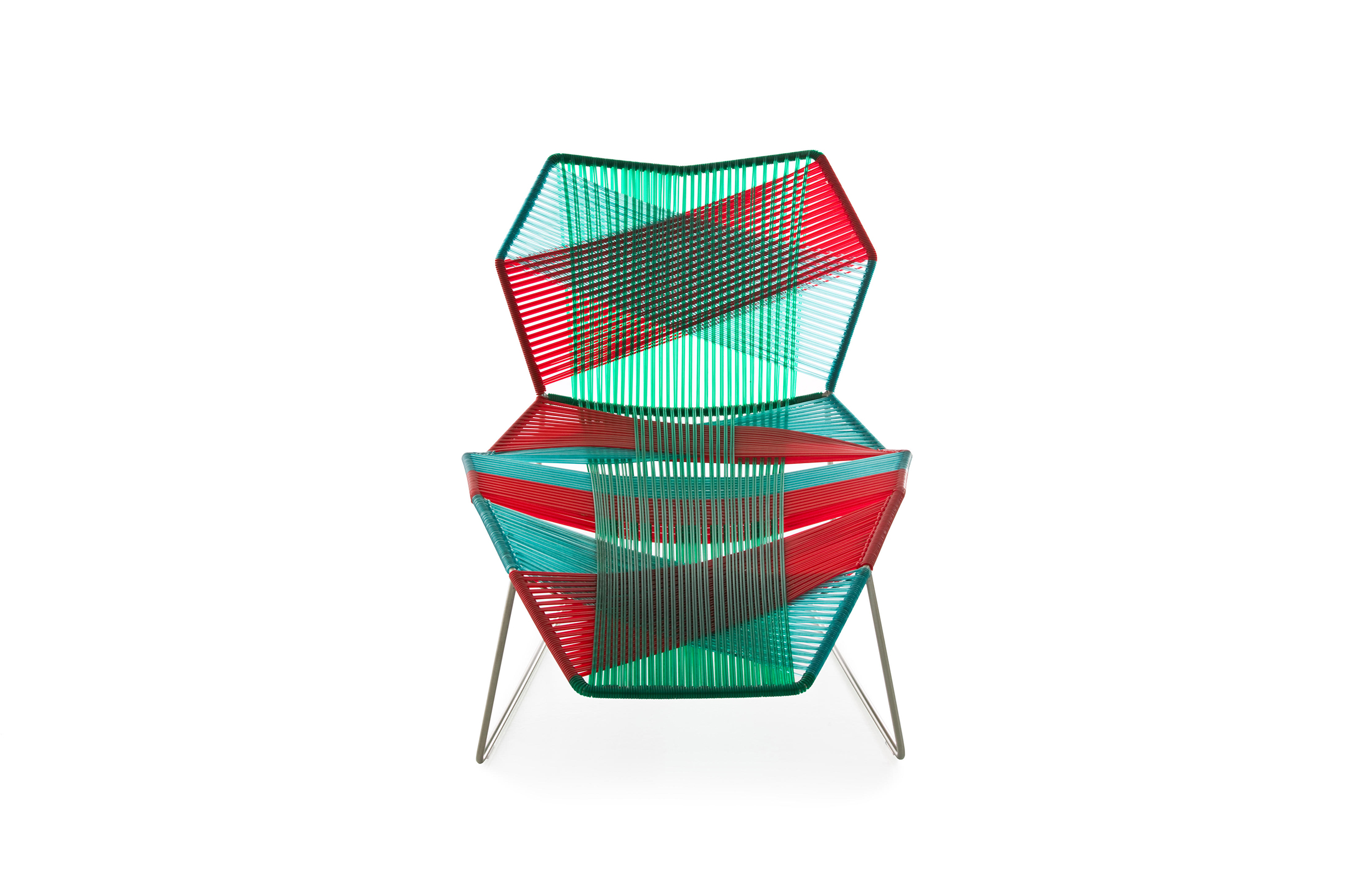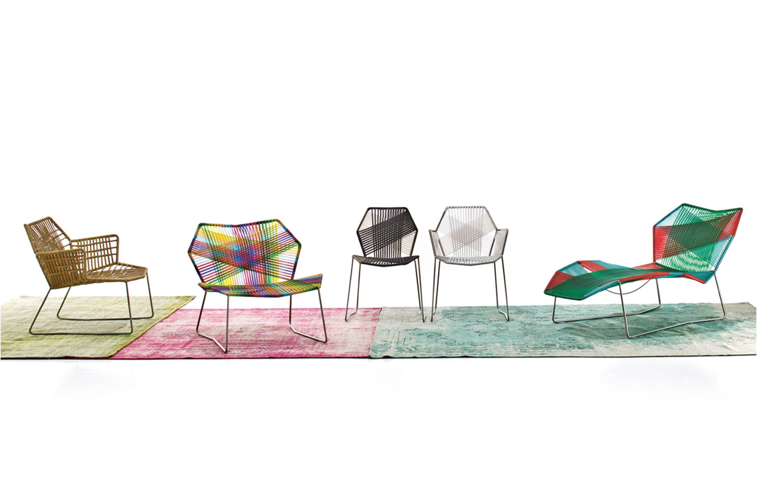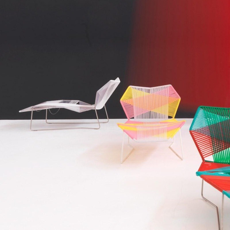 安蒂博迪(Antibodi)的钢管框架成为设计师用于创意改造的起点。框架被包裹和变换,座位根据所使用不同颜色的材料呈现不同的个性。两到三种颜色的线条以螺旋的方式将钢管包裹起来,形成了一种有趣的颜色复杂的设计。