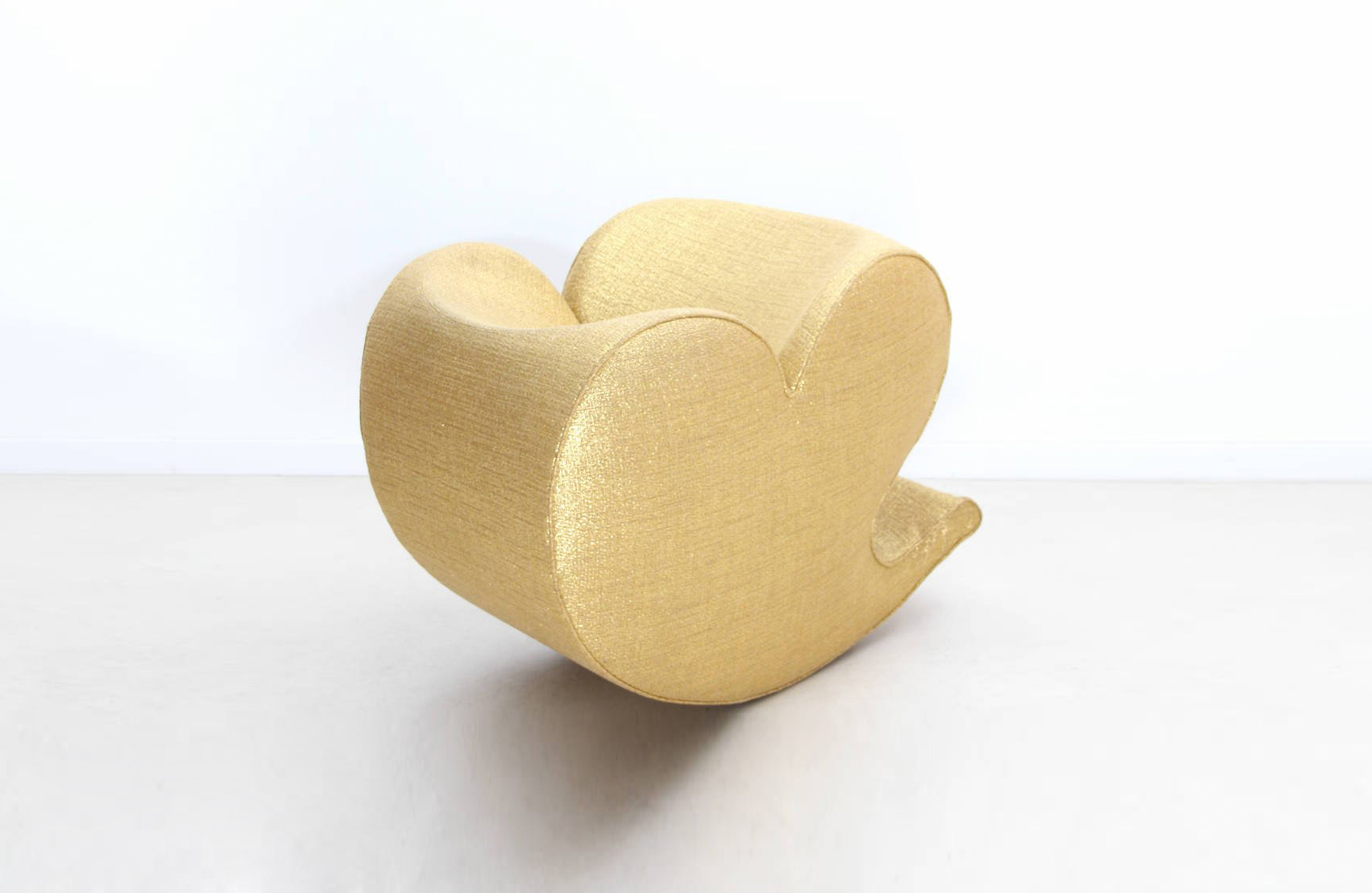 由Ron Arad在1988年设计的一个大的简单的钢椅,展示了一种简单的形式,可以在不影响设计原则的情况下,通过对材料和生产过程的重新解释而被翻译。从建设性的姿态获得的模型变成了工业生产;视觉的柔软和丰满的体积,舒适。更容易探索旋转模制和聚乙烯的使用;在冷泡中柔软的版本,用聚酯纤维包覆,触觉表面的转换;在元素的集合中,形态学和动态形式。