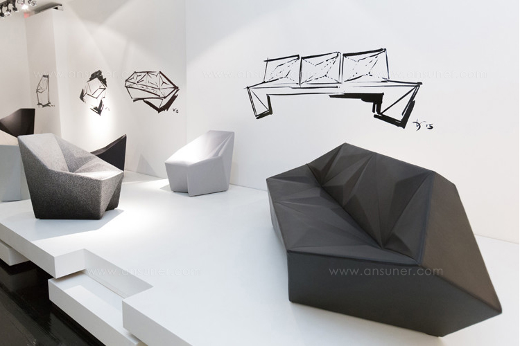 Gemma系列是围绕着对比和经验的概念发展而来的。立体几何的强烈不对称与室内装饰的柔软性形成了鲜明的对比。这个多面的侧面让人想起了珍贵的宝石和15世纪意大利挂毯的典型组合。这个集合代表了Libeskind的复杂几何图形和Moroso的著名专家之间的协同作用。