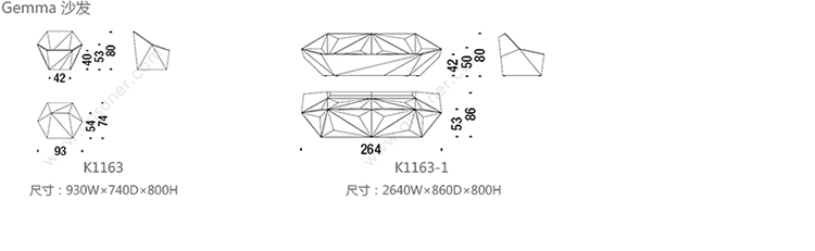 Gemma 沙发 系列尺寸/示意图
