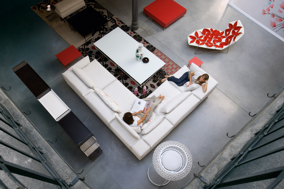 精致而舒适,低调奢华,略带东方风情。在标准位置时简单、最小;当靠背有倾斜的机制时,超级舒适。彩钢或黑色的彩管腿让人联想到用来演奏米卡多(或称“上海”意大利语)的彩色木棒。舒适是一种内在的特性,它是通过在干净的、中性的色调中舒适地垫在座椅靠垫上实现的,这种色调与在梅花、翠绿、红辣椒和漆红色中所提供的洒垫和涂漆的边桌所提供的色彩形成了完美的对比。