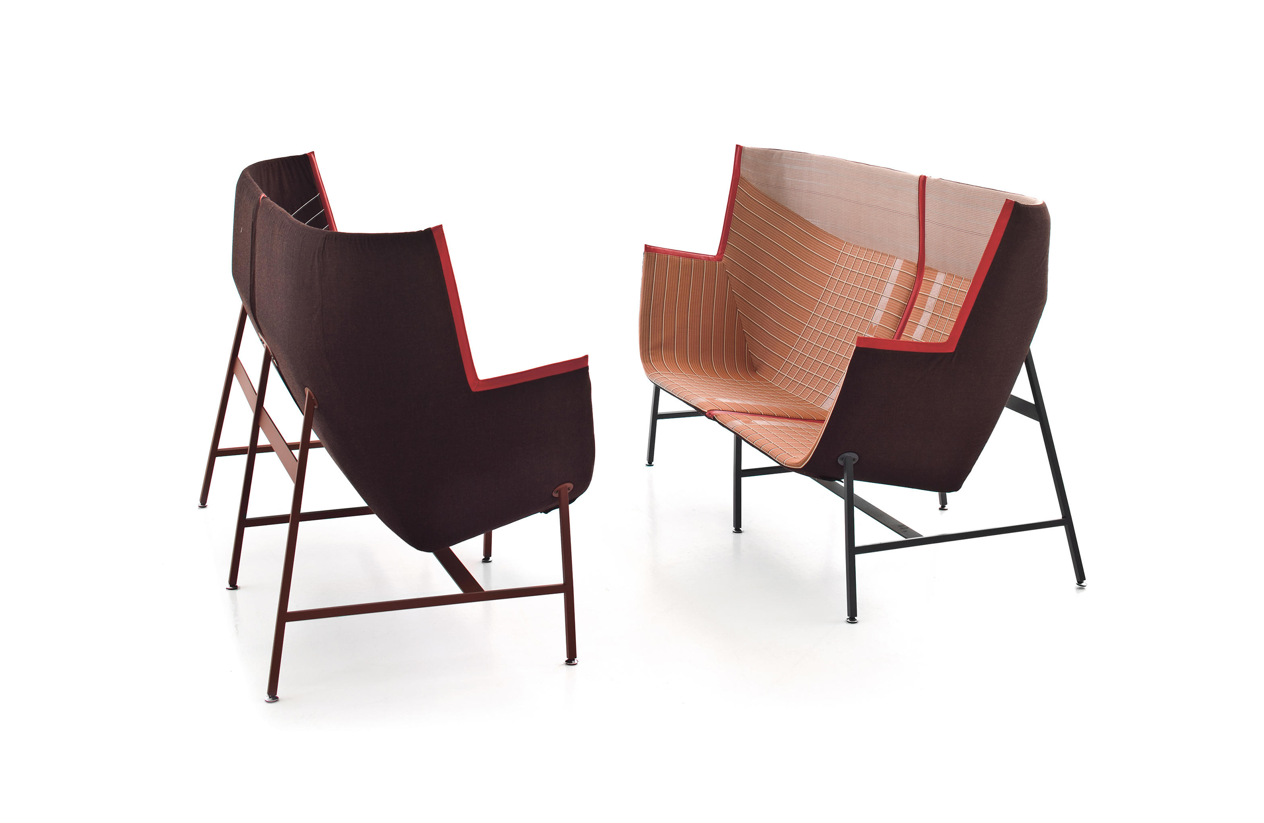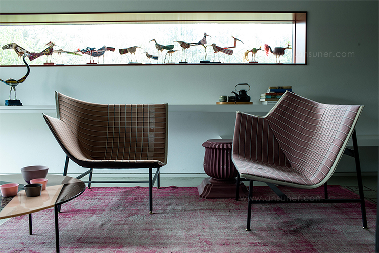 纸飞机起源于一种基于图形纸的织物设计:它的形状来自于纸张的折叠和造型,作为对形式和结构的探索,创造出角度、线条和多边形。它看似简单,却需要高超的裁剪技巧:面料的线条必须与椅子的几何结构完美结合,这意味着没有犯错的余地。