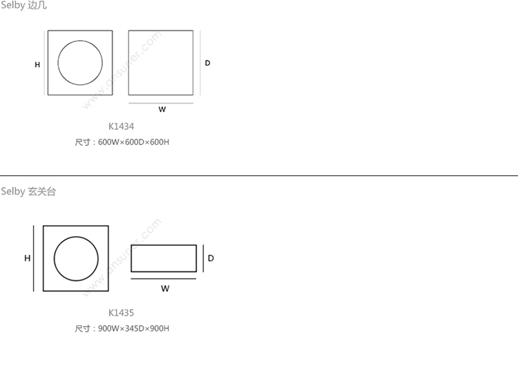 Selby 边几 系列尺寸/示意图