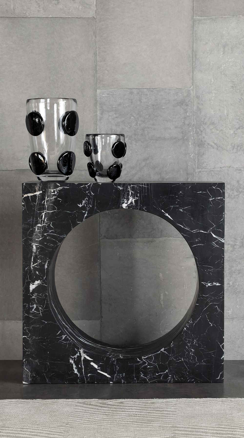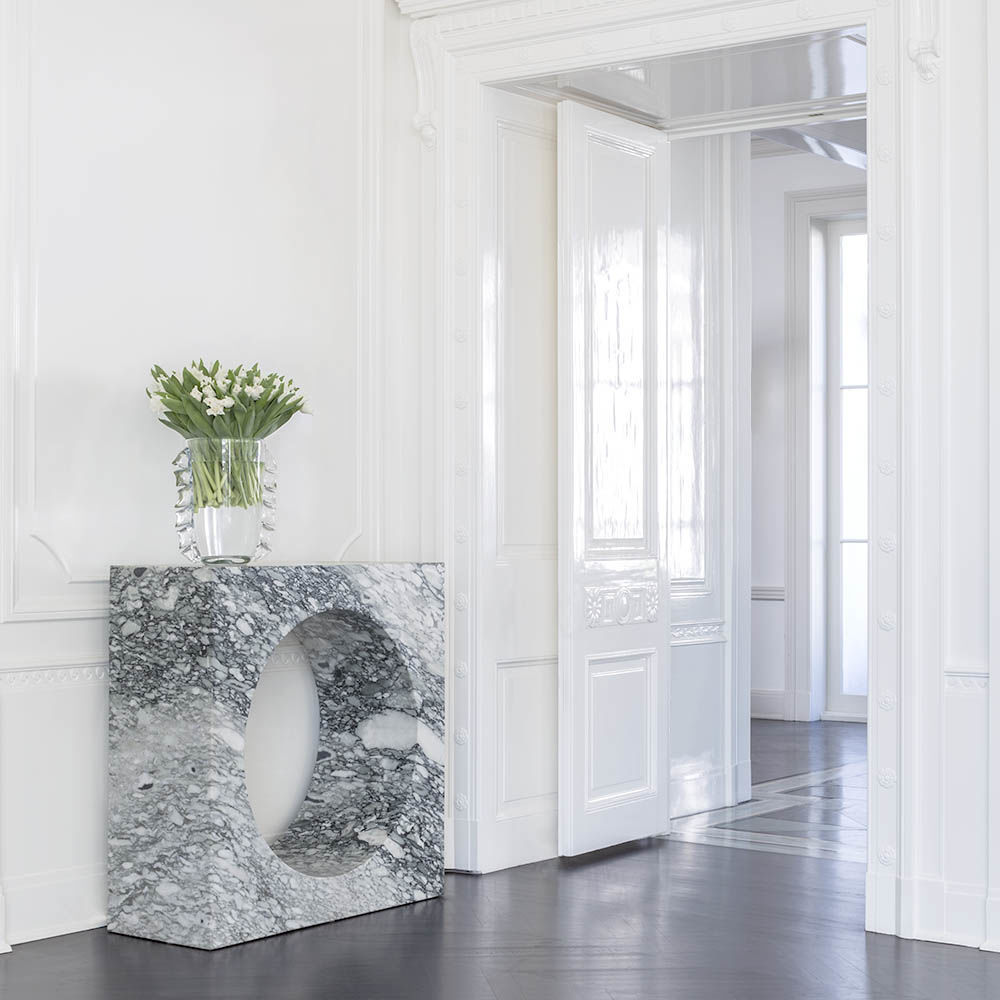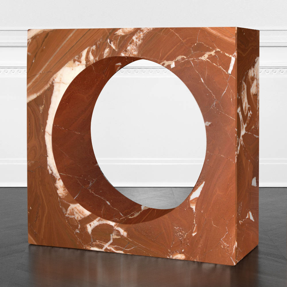 Selby Console(塞尔比玄关台)由大块坚固的大理石雕刻而成,是一种有机极简主义运动。 完美切割的中心圆柱体会产生戏剧性的负面空间。 大花大理石,密封和磨光丰富,具有华丽的运动。