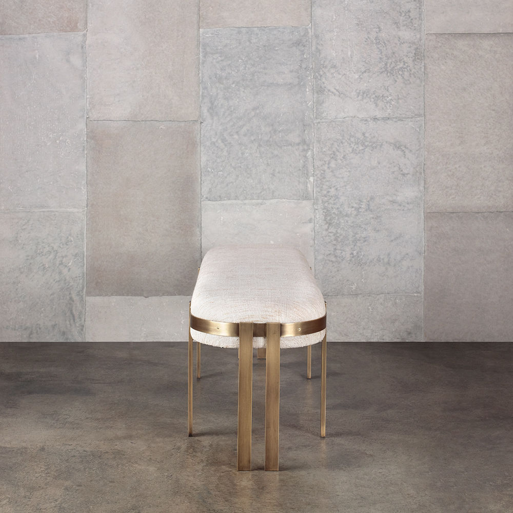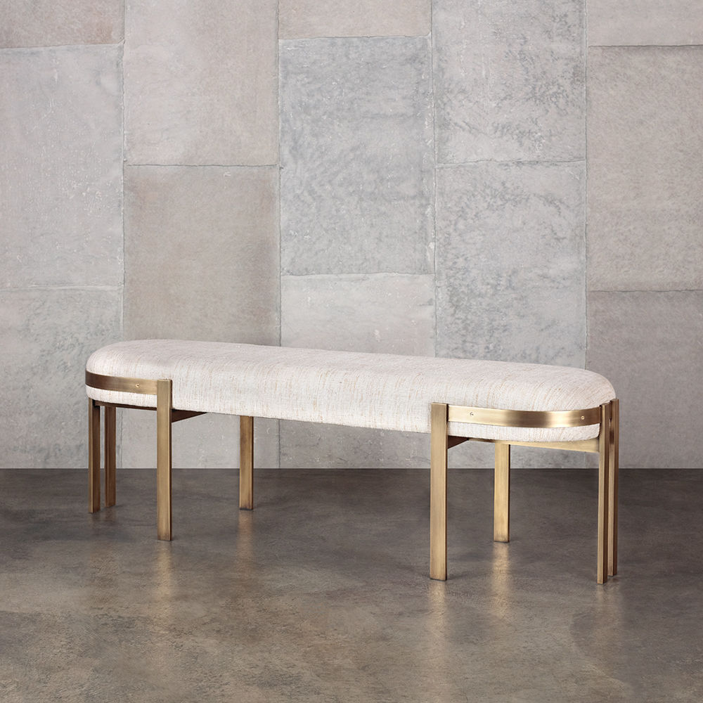 标志性的Elliot长凳结合了简洁的线条和经典的白话。 这款软垫长凳采用成对的黄铜棒料腿,饰有抛光黄铜或油擦黄铜饰面。 座椅有各种精选面料和皮革可供选择。