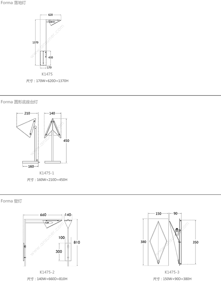 Forma 落地灯 系列尺寸/示意图
