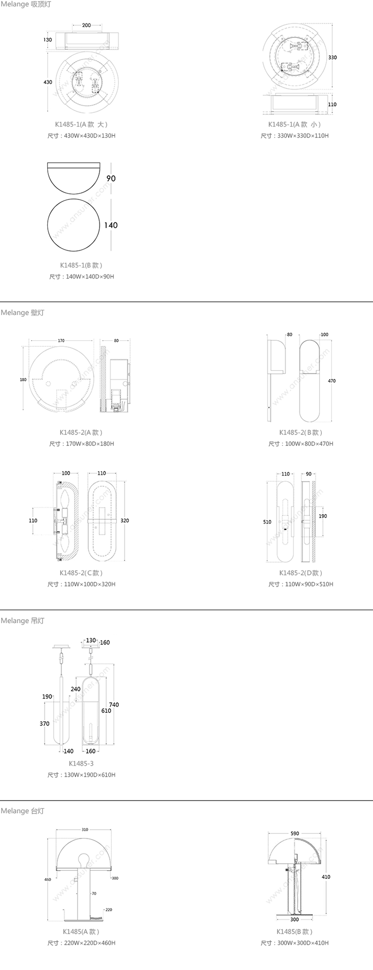 Melange 吸顶灯 系列尺寸/示意图