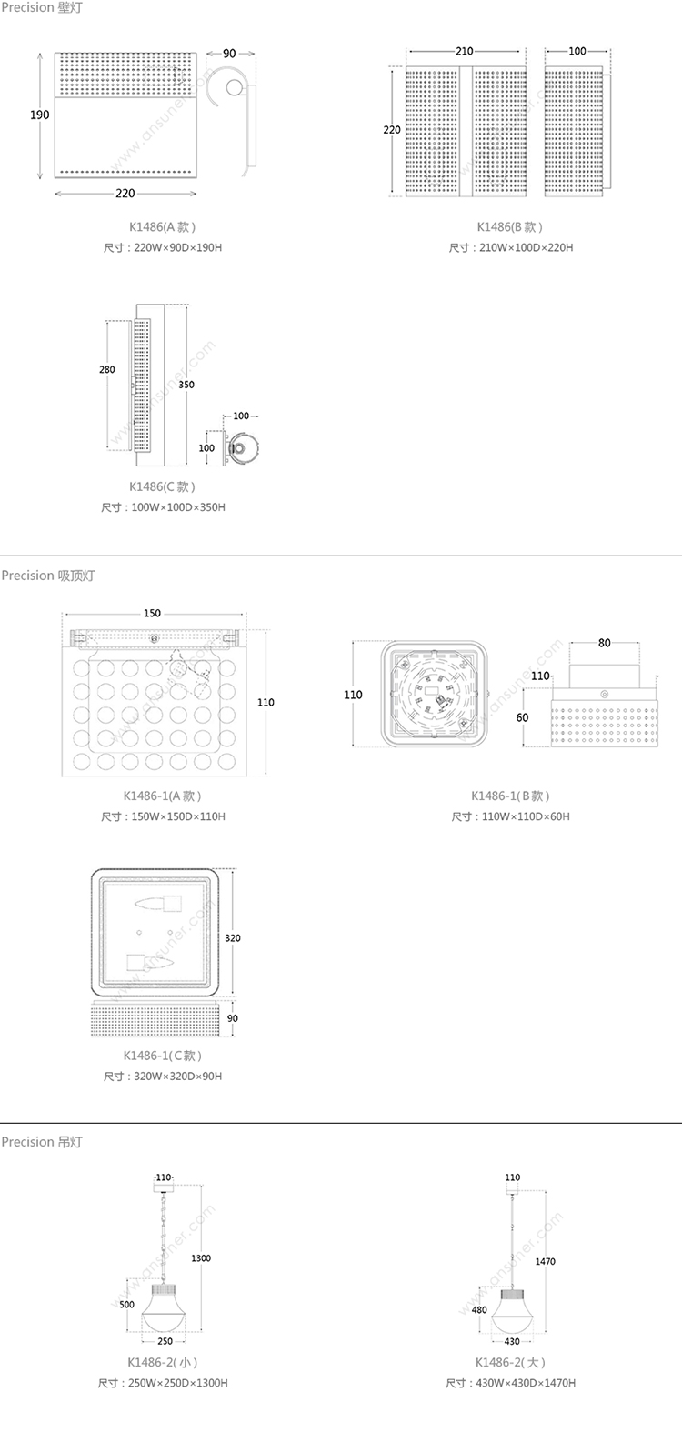 Precision 壁灯 系列尺寸/示意图