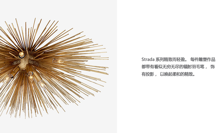 Strada系列精致而轻盈,灵感来自Kelly对青铜和充满活力的有机形态的热爱。 每件雕塑作品都带有看似无穷无尽的辐射羽毛笔,饰有投影,以唤起柔和的精致。