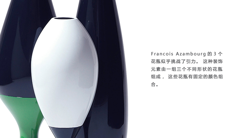 Francois Azambourg的3个花瓶似乎挑战了引力。 这种装饰元素由一组三个不同形状的花瓶组成,这些花瓶有固定的颜色组合。