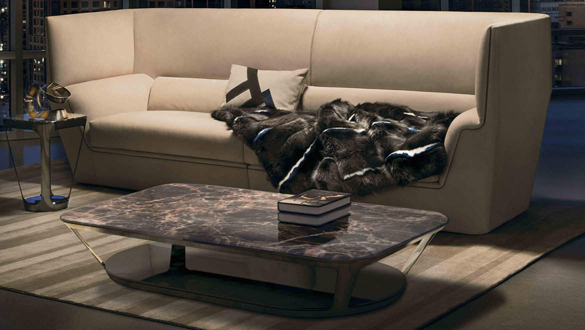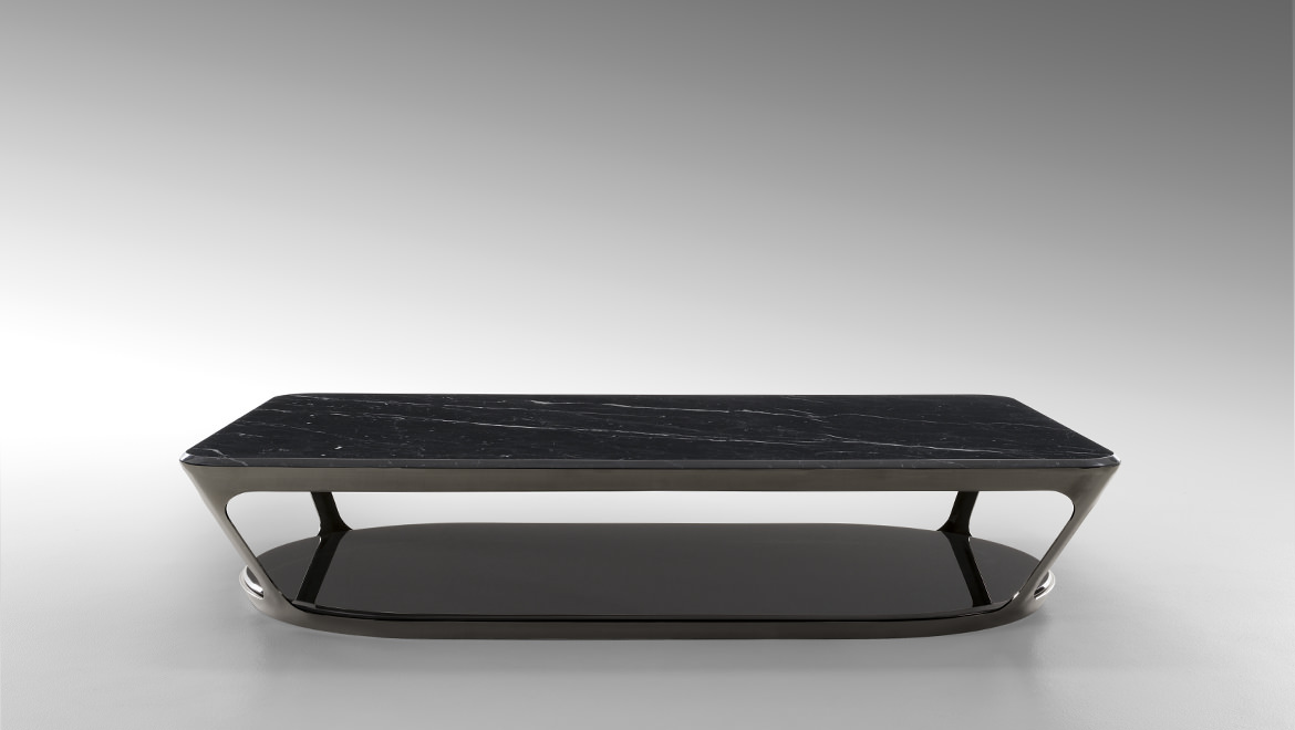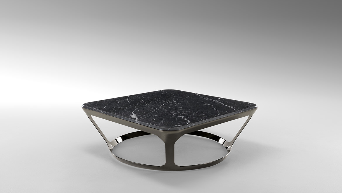 皮埃尔咖啡和侧桌的特点是整体的顶部和框架在减少的厚度。它们有一个外部金属“皮肤”,有大的开放表面和深灰色的表面。这种轻盈,加上稳定性,在表面上很明显,似乎漂浮着,有复杂的地面细节,都是缎质玻璃和珍贵的大理石。