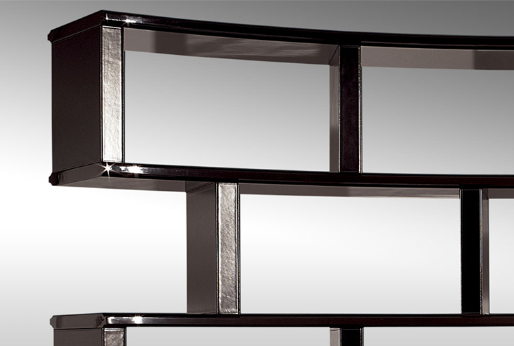 Glossy lacquered wood with leather details