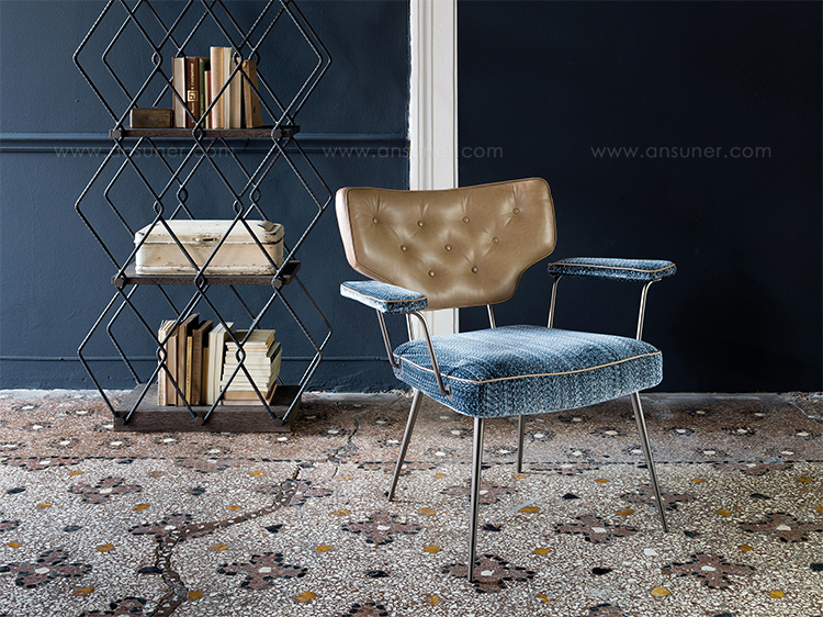 Twiggy是一款多功能的扶手椅,带有一种时尚的复古风格,灵感来源于一种个人时尚风格。在皮革或织物上的棉背,可以与座椅和手臂的装饰相匹配。滚边是一种高级的高级定制的细节,在周边,和背部的材料是相同的材料。这种腿有云母棕或钛金属。