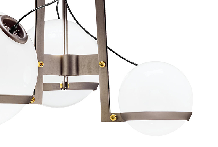 创意和吸引力是泡泡龙的特征。 泡泡龙可用作落地灯或悬吊灯,反映了泡泡龙的轻盈。其三个不同深浅和尺寸的玻璃球体由薄金属条带支撑。设计灵感来自同名游戏泡泡龙。