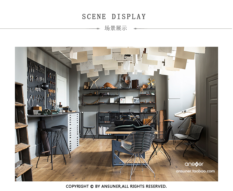 金属丝吧椅由Jasper Overgaard和Christian Dyrman设计。2014年设计的金属丝躺椅是一种更低、更宽、更平放的版本,与铁丝餐椅相比。