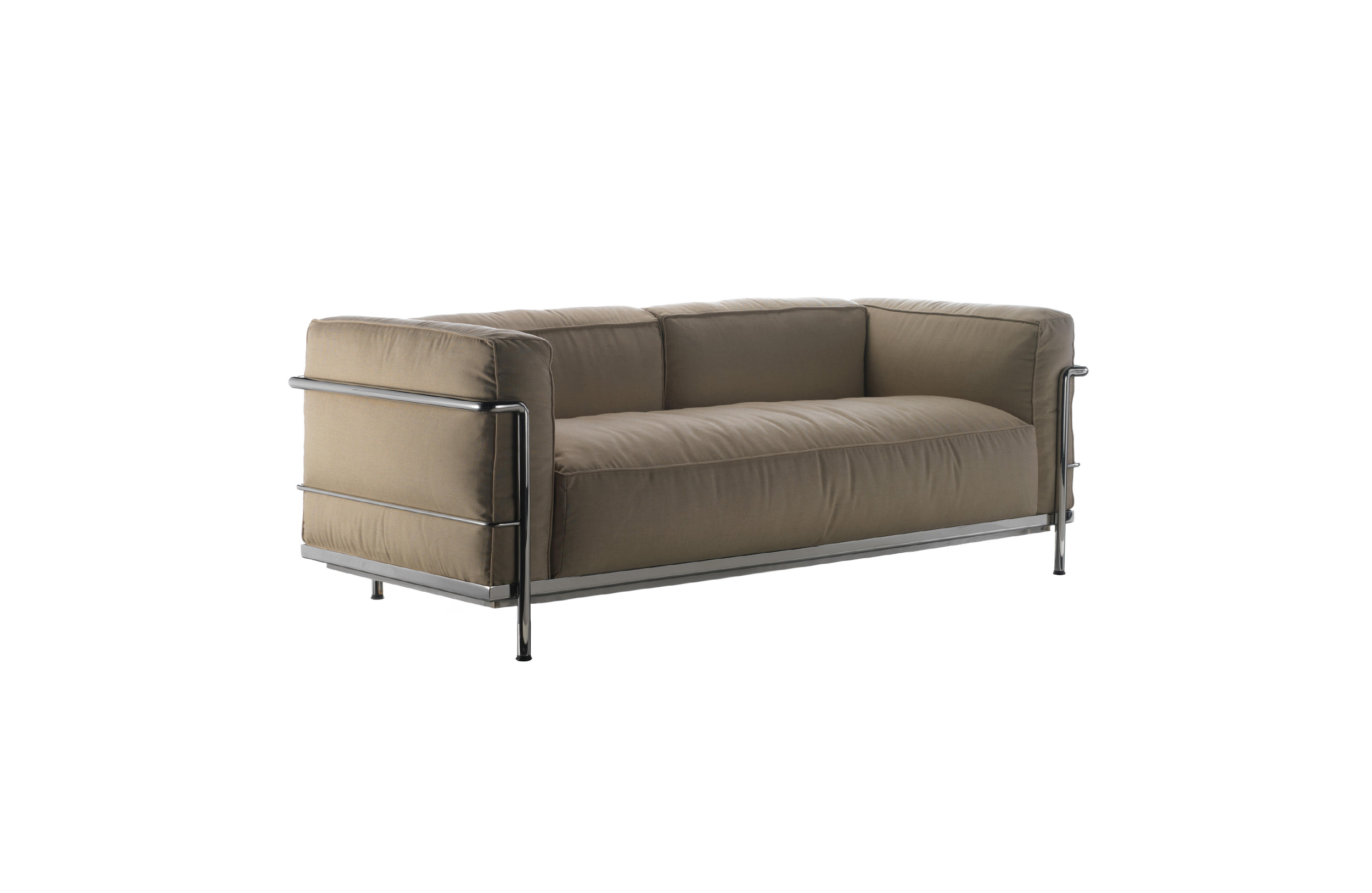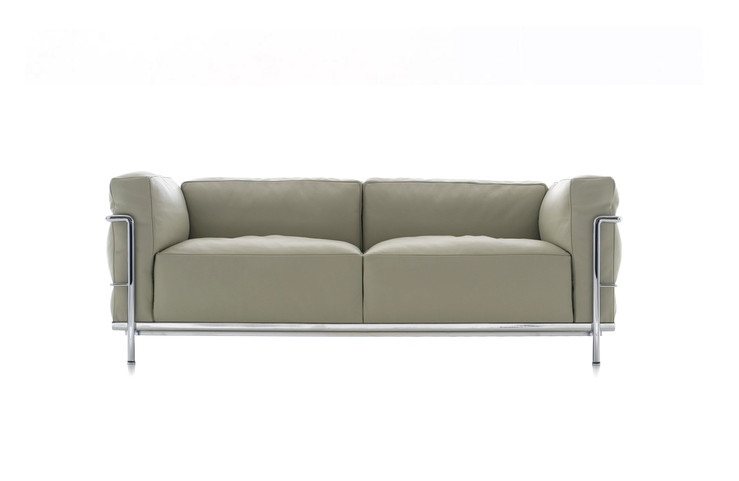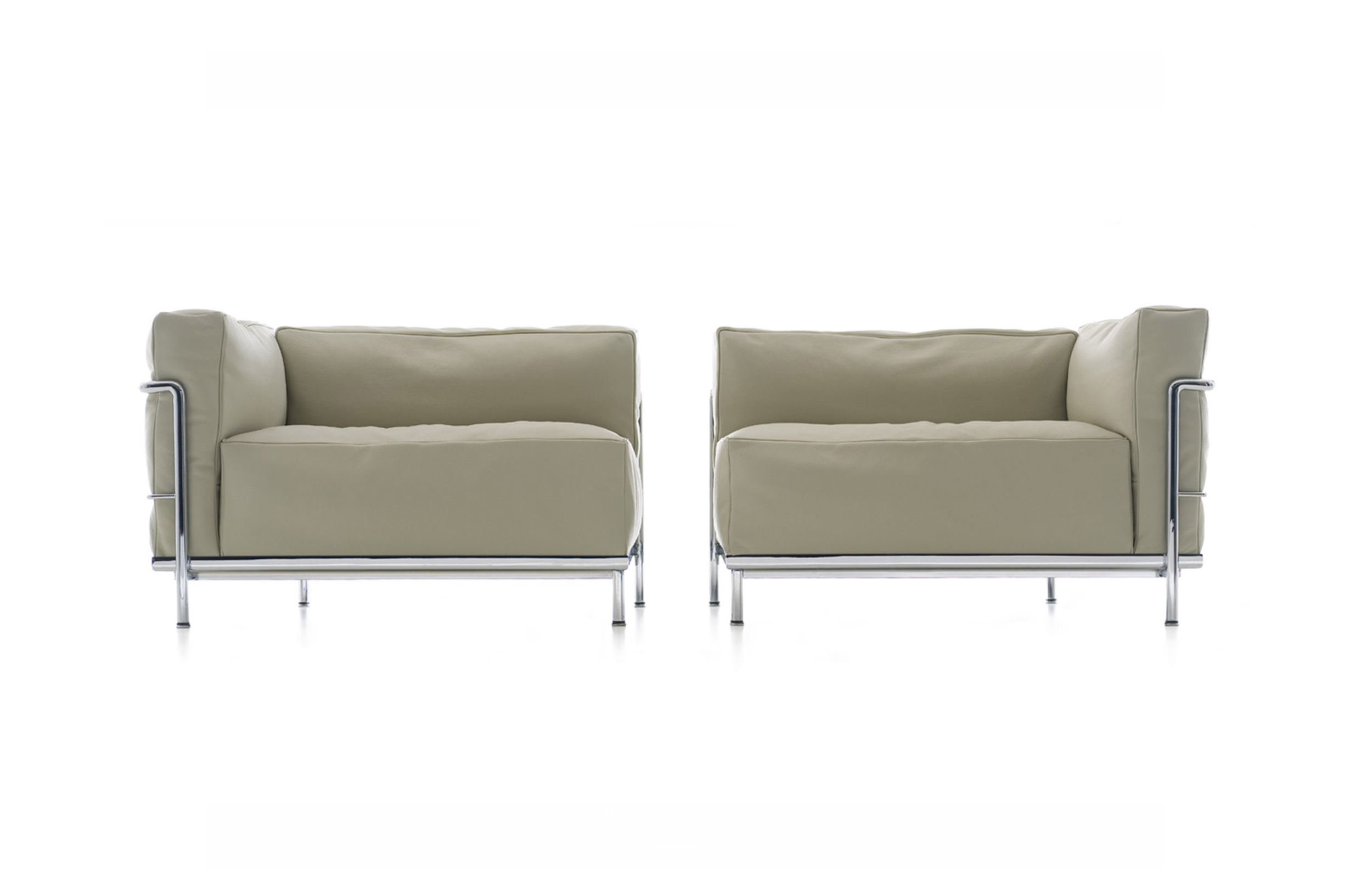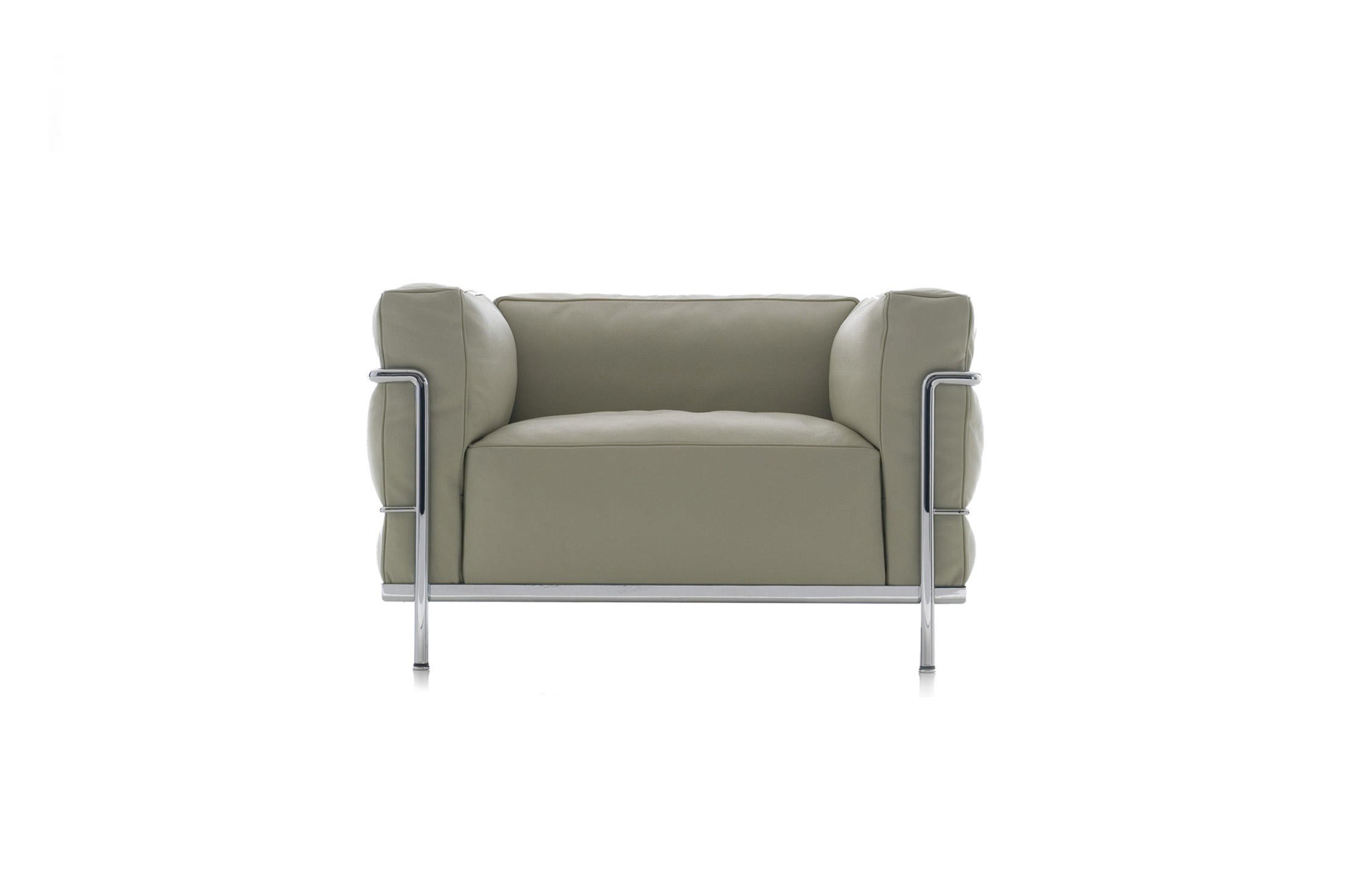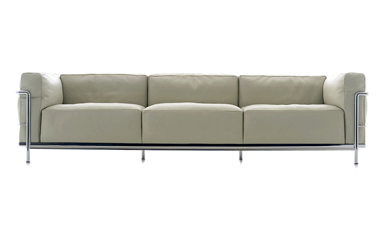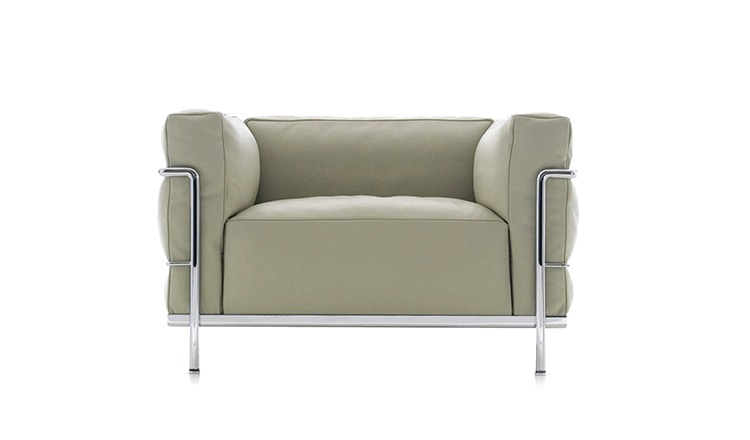 Fauteuil Grand Confort, 又称LC3。采用CR3三价镀铬钢材质或光泽玄武岩搭配灰色、亮蓝、绿色、枣红及赭色或哑光黑色珐琅钢架的双扶手椅和左/右单扶手椅及两人位/三人位沙发。柔软的衬垫采用聚氨酯海绵和喷胶棉或聚氨酯芯羽绒棉。皮革或布艺面料软包;镀铬框架结构可由布艺软包。同样有户外版本。