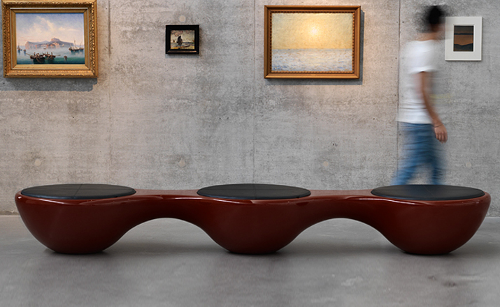 瑞典设计师Jangir Maddadi设计的这款联合座凳系列,可分为双座,三座及多坐,我司主要推出两座及三座,分别为:Union 2-seater Bench(联合双座凳)和Union 3-seater Bench(联合三座凳)。大家都知道,一般的座椅都是可以一个人或多个人一起坐,相互之间都不会受到影响。而这款连体休闲座椅却不同,外形很像一只陀螺,使用起来很像一个不倒翁,上面最多可以坐四个人。但是设计师并没有将这样的座椅让它们独立出现,而是用三张同样的座椅链接在一起,并且形成一个90度的直角,这样无论是陀螺还是不倒翁,都会很稳定的供给我们使用。当然,理论上来说,生产这种椅子,不仅可以做3件连体,4个,6个……都可以做。只是要考虑运输问题,或许3个是最完美的。这款连体休闲座椅不仅外形很优秀,而且还更加实用,使坐在上面的人有更多的空间,而且还可以保持面对面的互动。