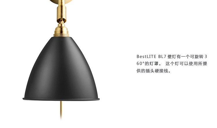 Bestlite BL7壁灯有一个可旋转360°的灯罩。这个灯可以使用所提供的插头硬接线。