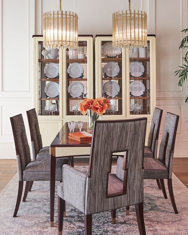 布包饰工艺,由经验丰富的技师手工独立完成,确保美观、耐用又符合人体工程学;铜脚,赋予中式韵味的同时以防磨损。线型具有浓郁的Art deco风格,现代简洁又充满艺术调性,背部镂空部位方便搬动。