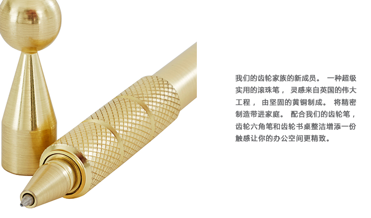 我们的齿轮家族的新成员。一种超级实用的滚珠笔,灵感来自英国的伟大工程,由坚固的黄铜制成。将精密制造带进家庭。配合我们的齿轮笔,齿轮六角笔和齿轮书桌整洁增添一份触感让你的办公空间更精致。