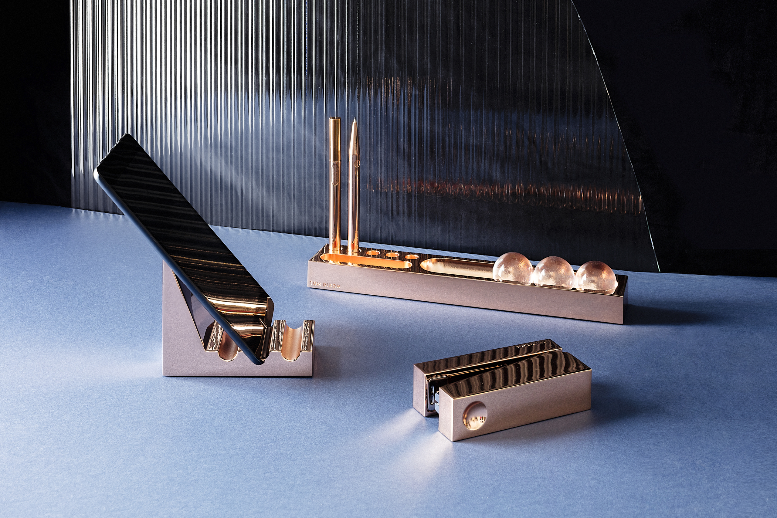 立方体平板架是由锌合金,镀铜,抛光和漆完成,汤姆迪克森标志蚀刻在基座。