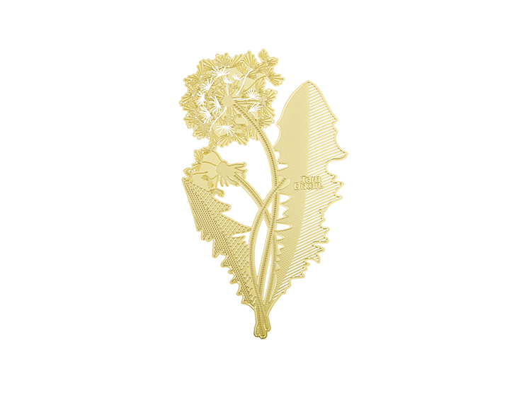 一个灵感来自大自然的书签和长期被遗忘的压花,往往落在一本备受喜爱的书的页面上。 工具蒲公英采用微观细节制造,从黄铜板精密蚀刻,创造出这种精致的花朵。 还有羽毛笔,钢笔,手形指针,明信片和放大镜。