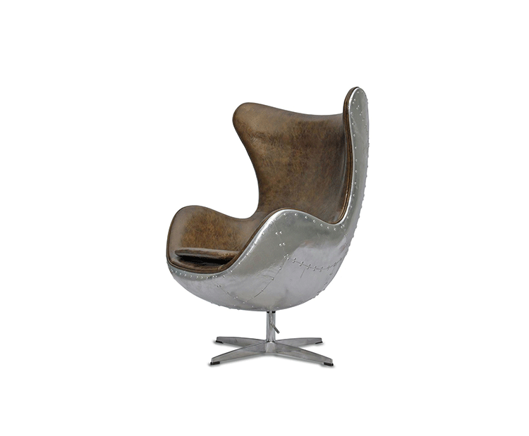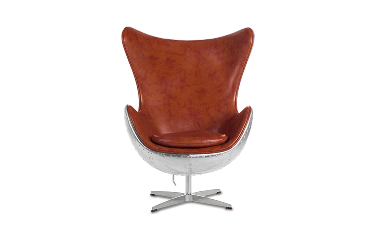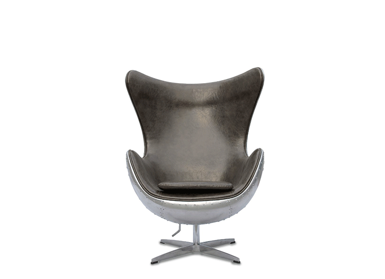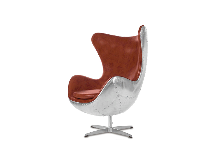 蛋椅(Egg Chair)是为了哥本哈根皇家酒店的大厅以及接待区而被设计出来的,因为当时的机器还不成熟,所有东西都需要经过手工处理,当时Arne Jacobsen在家的车库中设计出蛋椅。蛋椅(Egg Chair)采用玻璃钢内坯,外层是羊毛绒布或者意大利真皮,座垫和靠背大小符合人体结构,内有定型海绵,增加弹性,而且耐坐不变形。整个椅子的布或皮下面都有垫弹性海绵,不仅外观圆滑且更富有弹性,让坐感更加舒适。四星亮光铝脚,鸡蛋椅可以360度旋转(带倾仰功能)。铝合金脚和不锈钢脚,都要达到镜面效果,光亮照人,加上精心设计的椅脑与扶手,两边对称相应,配上脚踏,更具人性化。