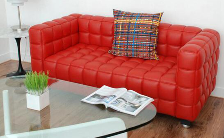 This high quality reproduction of the Josef Hoffmann Kubus Sofa features a handcrafted hardwood frame graciously lined with polyurethane foam.The surface is luxuriously soft to the touch, compliments of its premium 100% Top-Grain Aniline leather upholstery.This premium reproduction is generously proportioned to original full-scale size and cube count. Precision stitched & aniline leather piped tactile cubes create a thick body of cushioning that is so comfortable you’ll understand why this sofa has been a modern classic for nearly a century.For those looking for historic significance in midcentury modern furnishings,the Hoffman Kubus is a certain candidate.