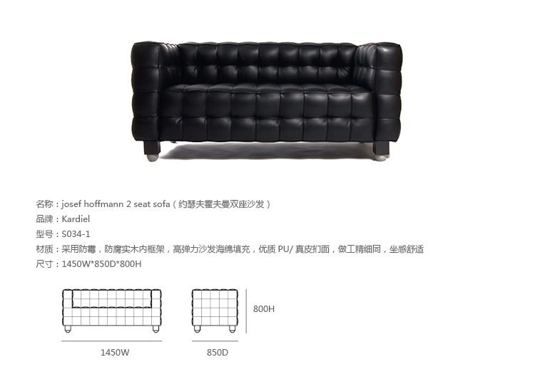创意家具 - 坐具|沙发|办公家具|设计师家具|约瑟夫霍夫曼二座沙发