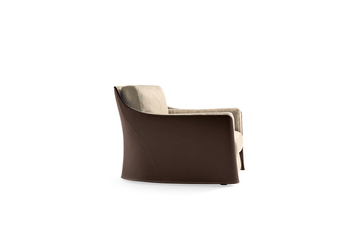 扶手椅和沙发的结构型钢的靠背,座位上的一个杨树胶合板和coldfoamed填充聚氨酯纤维覆盖。 靠背和坐垫上的鹅羽毛,最后在扩大聚氨酯的插入。 家具,完全可移动的织物或皮革,可以是一种颜色或两种颜色在皮革和内部外部织物或皮革。 一个在鹅的羽毛垫扶手椅和两个沙发的推荐.