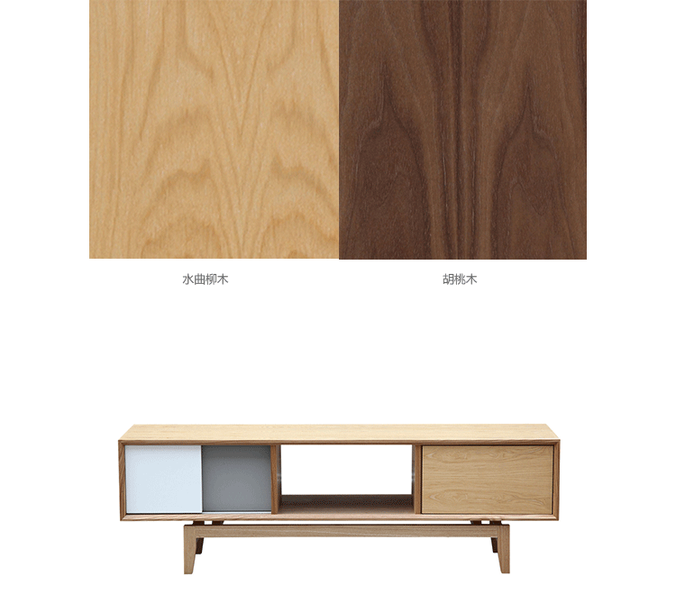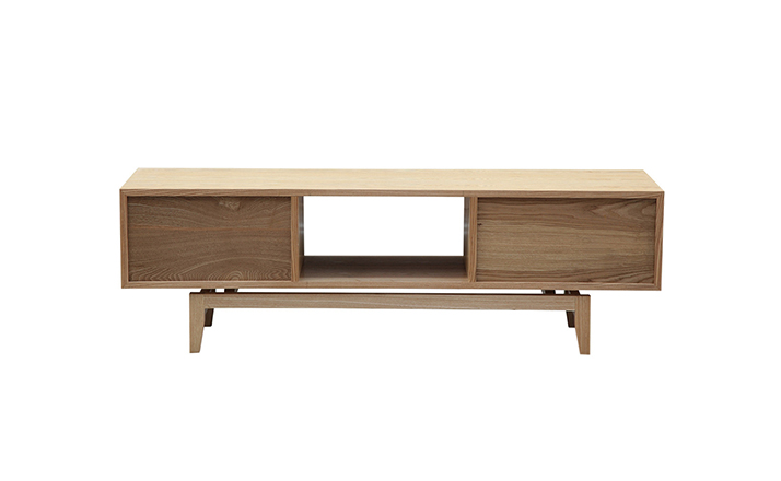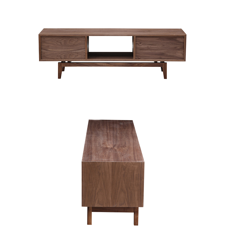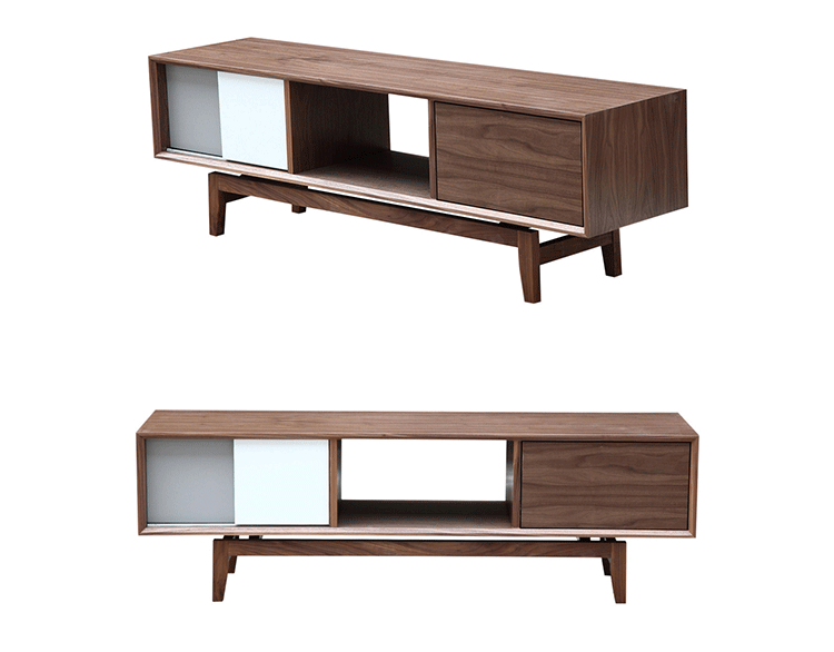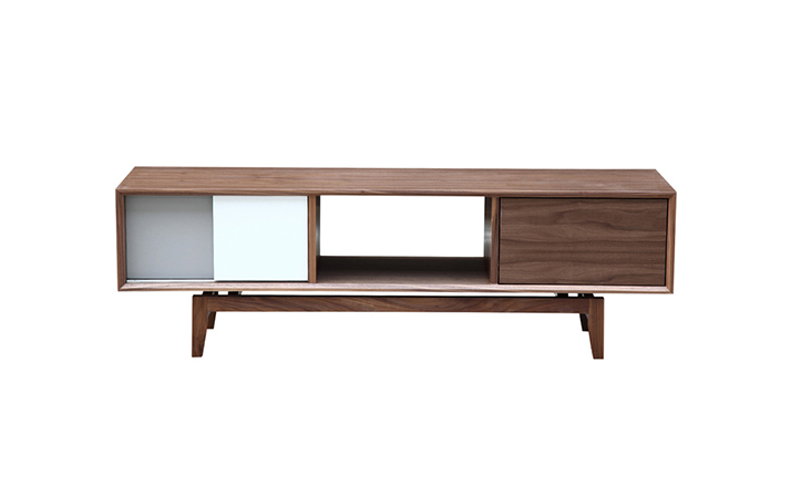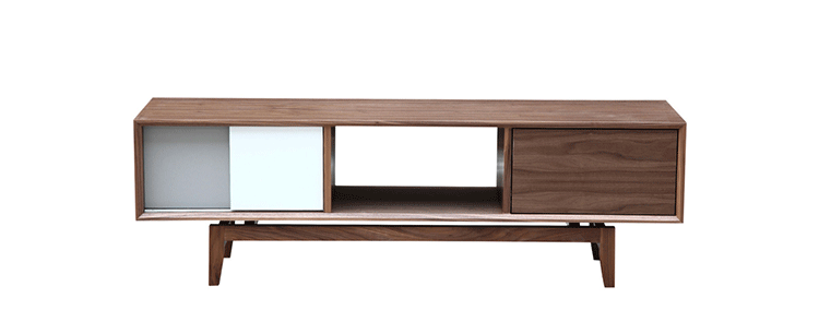 platform media cabinet(平台媒体橱柜)有着迷人的中世纪设计风格和当代形式巧妙融合,媒体橱柜主体平台由三组抽屉组成,中间的抽屉是敞开的,两侧的是滑动伸拉抽屉。在20世纪50年代末,60年代初, Finn Juhl和 Arne Vodder 最先尝试胶木和天然木的组合运用,并流行至今。这是大胆的创新,他们结合传统的新鲜的新兴技术与现代主义的概念。他们通过这些色彩绚烂的产品所实现的是令人印象深刻的比例的平衡。制作采用精选MDF板基材胡桃木或水曲柳木皮贴面、实木脚架、环保油漆喷涂,做工精湛,品质一流。