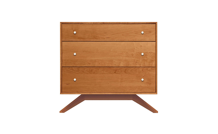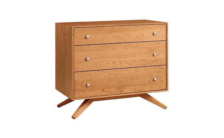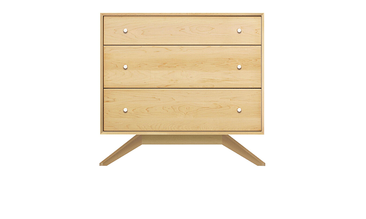 astrid 3 drawers dresser(阿斯特丽德3抽梳妆台)是Copeland Furniture公司astrid实木梳妆台系列之一,宽大的八字形脚架非常吸引人注目,制作并非易事,它其实是一个大工程,同时能引发无限期望和激情,3个平滑抽屉,可以给与提供许多存储空间。制作采用精选MDF板基材、进口美洲胡桃或水曲柳或枫木皮贴面、实木脚架、环保净味油漆喷涂、做工精湛。