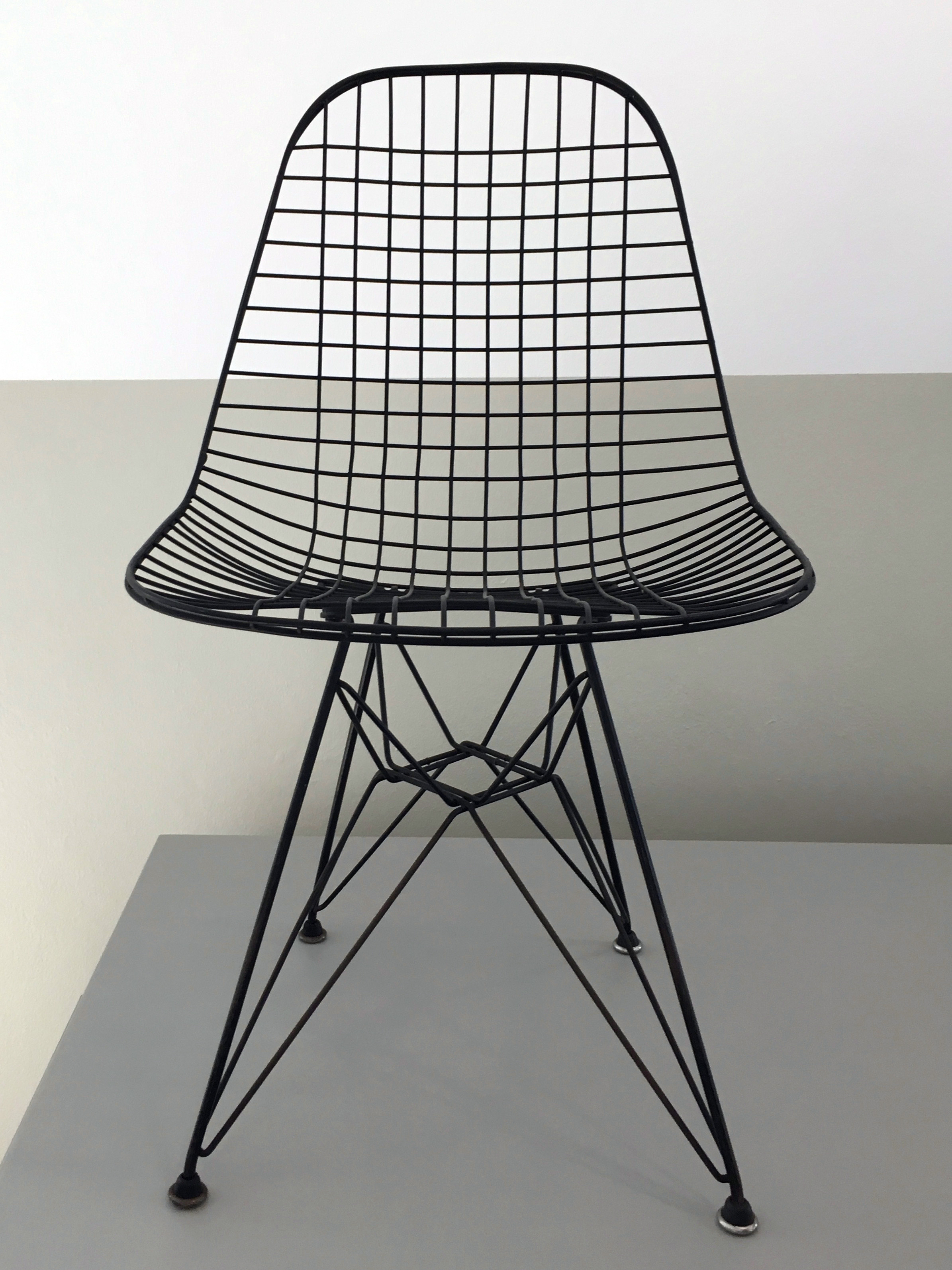 DKR 單椅結合了 Wire Chair 的網狀金屬椅座搭配鐵塔椅腳。