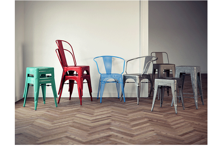 tolix chair(tolix椅)一把有味道、有态度的椅子,据说它最开始被使用在一艘战舰的天气预报房间里,故事的真实性与否不得而知,但是不影响其成为享誉世界的著名设计家具,1934年由Xavier Pauchard设计,早期是作为户外用家具设计,力图展现法式慵懒而闲适的气质,经年而来被全世界时尚设计师所宠爱,从室外扩展到家居、商业、展示等多个用途,而此椅也不负众望在各类空间中均有上佳表现,特别是近年来与混搭、乡村、美式、怀旧、北欧简约、中式等主要装修风格搭配,都呈现出独特的韵味,也被时尚界赞为“百搭第一”椅,可以用在酒吧,餐馆,咖啡馆等等地方,之后通过改进,设计出有扶手版本的tolix armchair(tolix扶手椅),高背版本的tolix high back bar stool(tolix高背吧凳),宽背版本的tolix wide back bar stool(tolix宽背吧凳),及tolix bar stool(tolix吧凳)和tolix mini stool(tolix迷你凳)。制作采用进口冷轧钢、磷酸防锈处理、静电油漆喷涂工艺、坐面为木板或PU海绵坐垫,颜色可选。