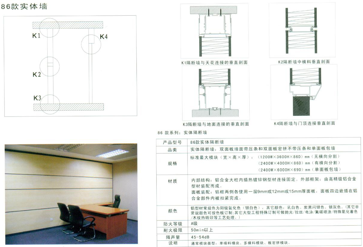 左图为86mm双面高隔断剖视图 |