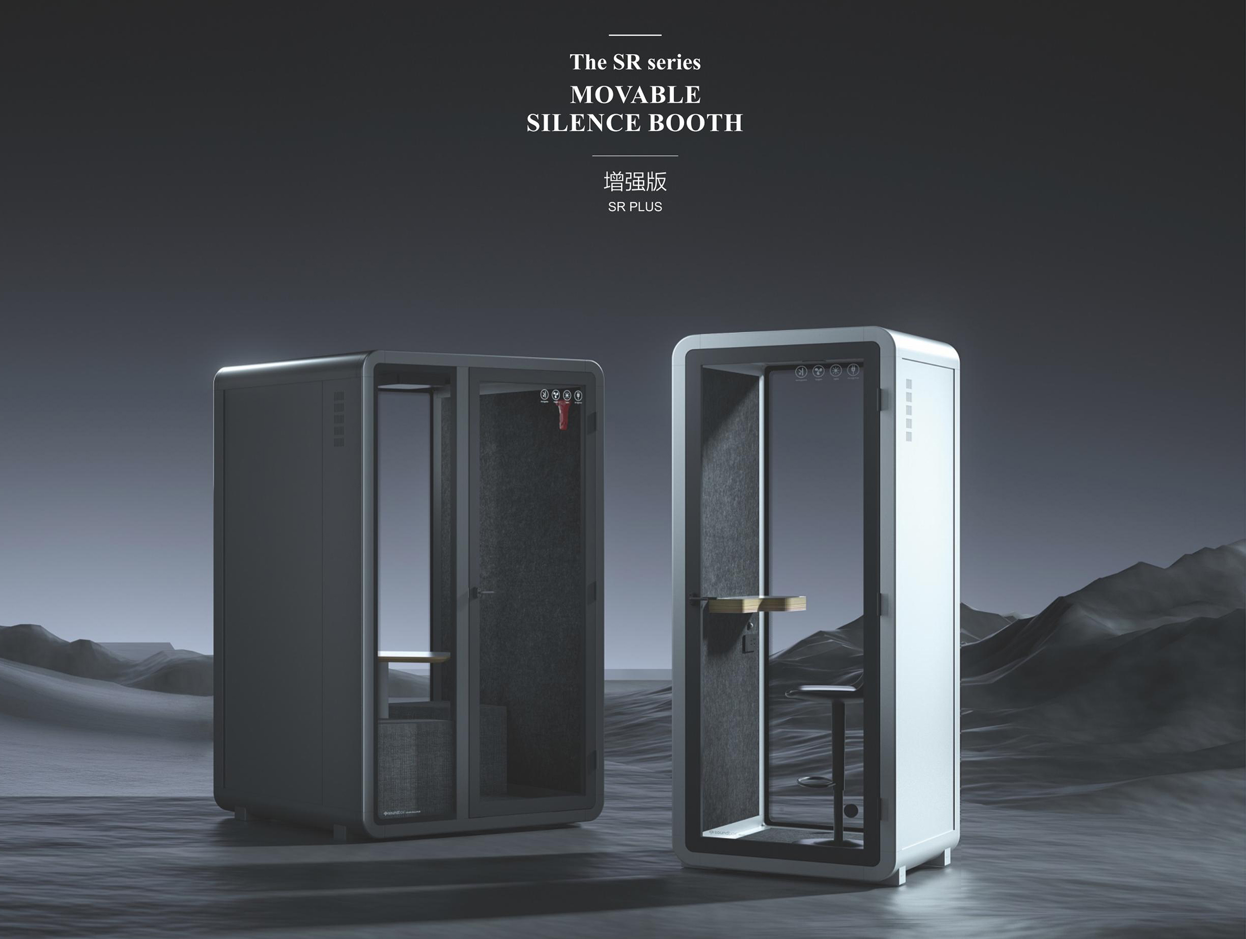 一个灵动的安静空间,满足您无限创想不传统的碳塑复合板、航空铝、隔声玻璃是它的主要组成,SOLIDWORKS软体力学建模让仓体组装仅需一种紧扣件,INSULMARSHALL ACOUSTIC 声学模拟设计准确预知并实现了舱体隔音和舱室音环境指标,它是一个强大,尽管它不是最完美的迷你空间,仓体采用可循环碳塑再生材料 SR系列 静音仓推崇低碳、简约、安全、实用主义优化非必要的功能和配置。从薄的全R角外观和互雅配色让它更精致、融入环境。