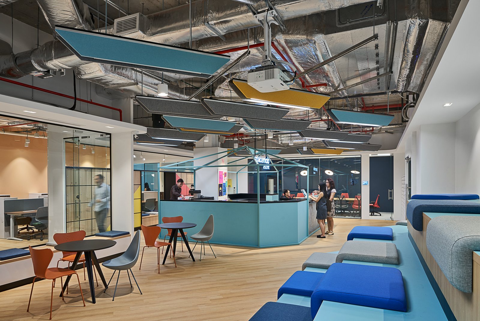 由ID21设计团队打造的新加坡联合办公品牌Spacemob,位于新加坡的一处科技园区内。缤纷多彩的室内空间洋溢着青春活力,成为创意工作和友好协作的完美之地。