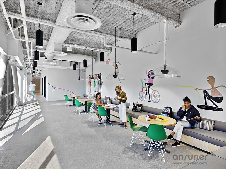音乐在Vans拥有深厚的根基,这里的“果酱&游戏室”配有很多乐器,允许员工随时来一段即兴表演或展开歌喉爆吼。Vans对艺术的痴迷同样令人难以置信,墙面上到处是经 典的滑板艺术图形、壁画和街头涂鸦,带来与众不同的潮流艺术体验。