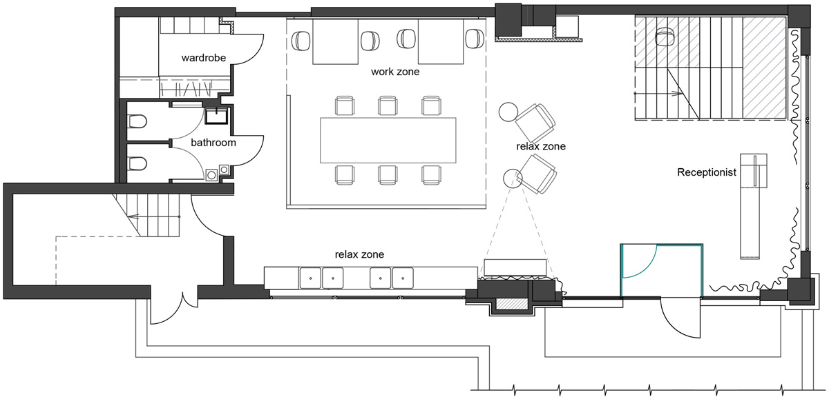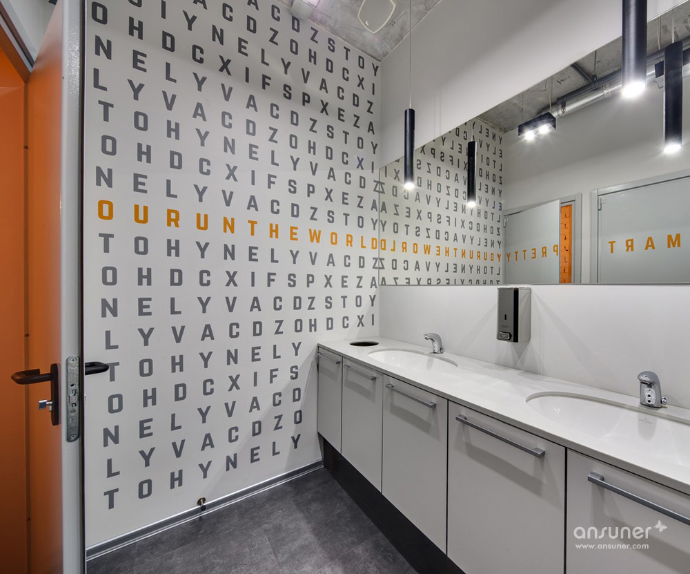 三层主要用作联合办公空间,配有会议室、skype视频聊天室、以及几间专题会议室。这里还配以开放而流动的开云网页版、以及采用接待区的格调布局的商务洽谈区。在这个洋溢着极简工业美学的工作空间里,设计团队运用了大量的创意吸引创业者,如鲜明饱和的色彩点缀、大量的创意图形与文字设计等。